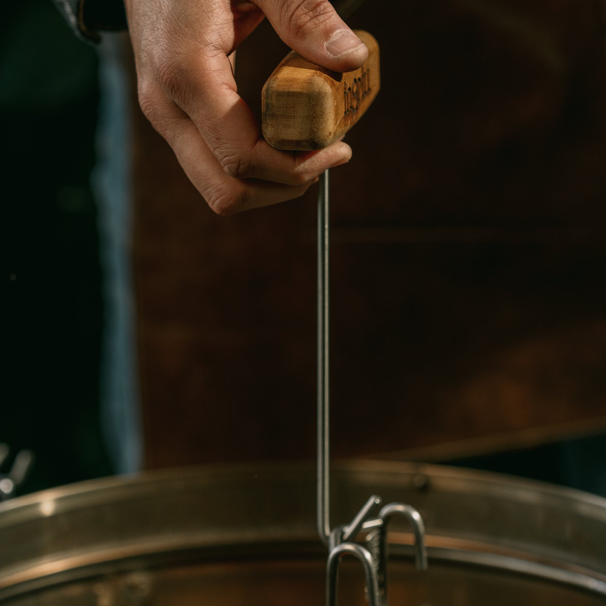 Garfio de acero inoxidable 304, con manija de madera de Roble o Teca, es tu herramienta indispensable para manipular los ganchos y accesorios dentro de tu barril.