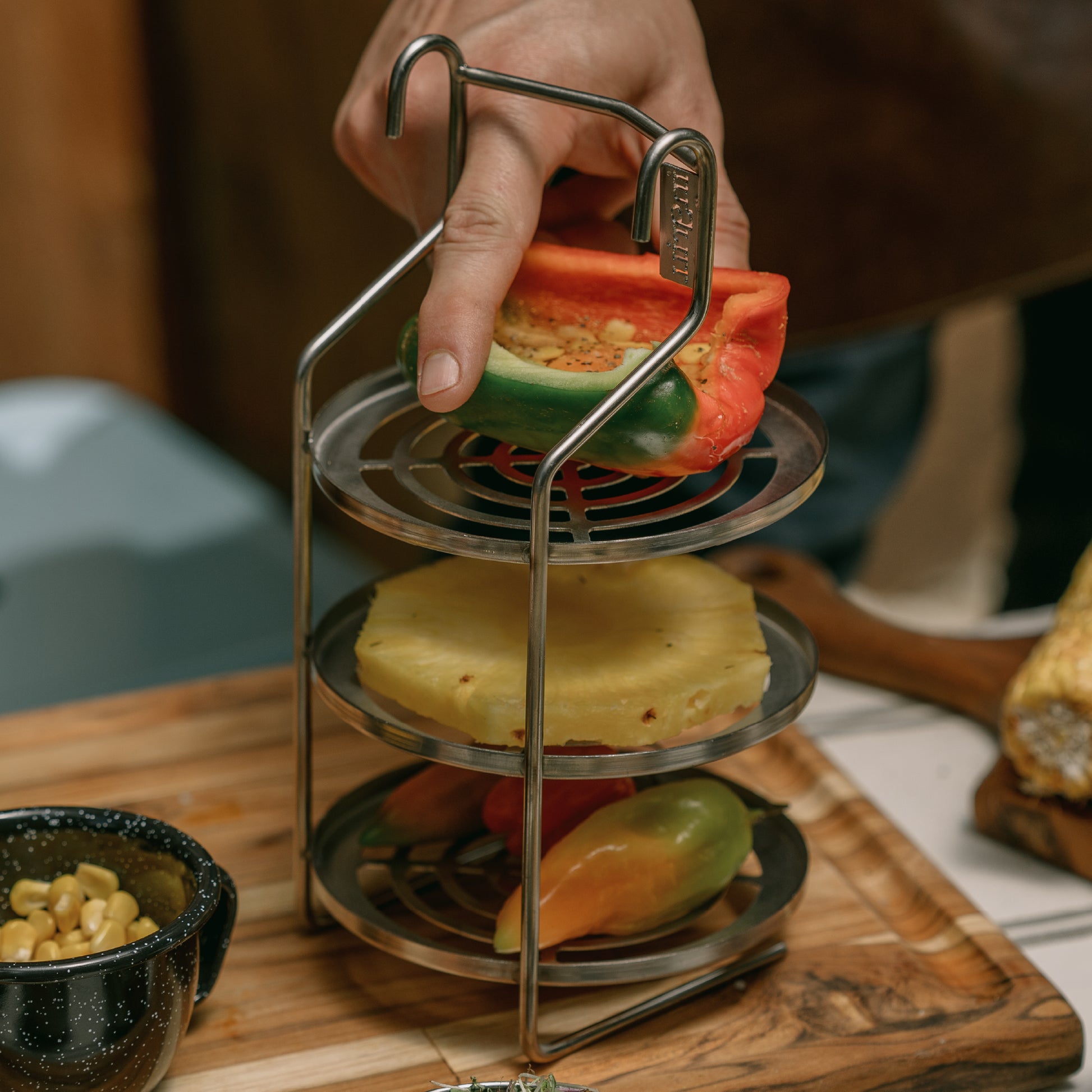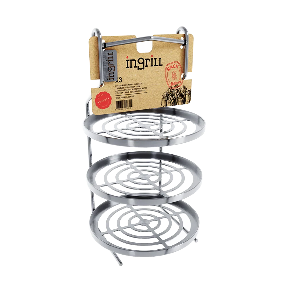 Accesorio de acero inoxidable 304 de 3 niveles, puedes utilizar los diferentes niveles de parrilla para acomodar cualquier tipo de alimento, entre ellos la carne de hamburguesa